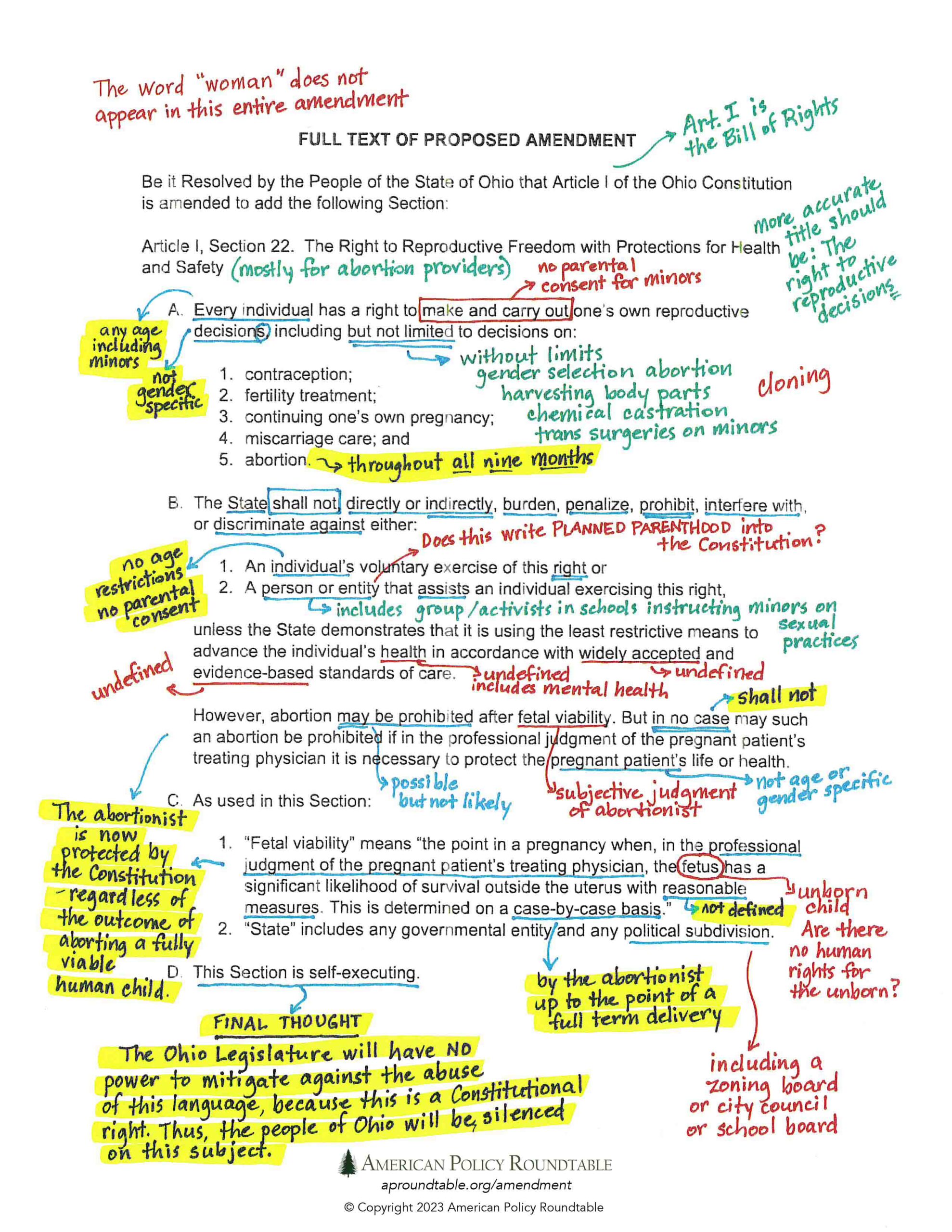 Press Release: The Ohio Roundtable Challenges Legal Construction of Reproductive Decisions Amendment, July 5, 2023